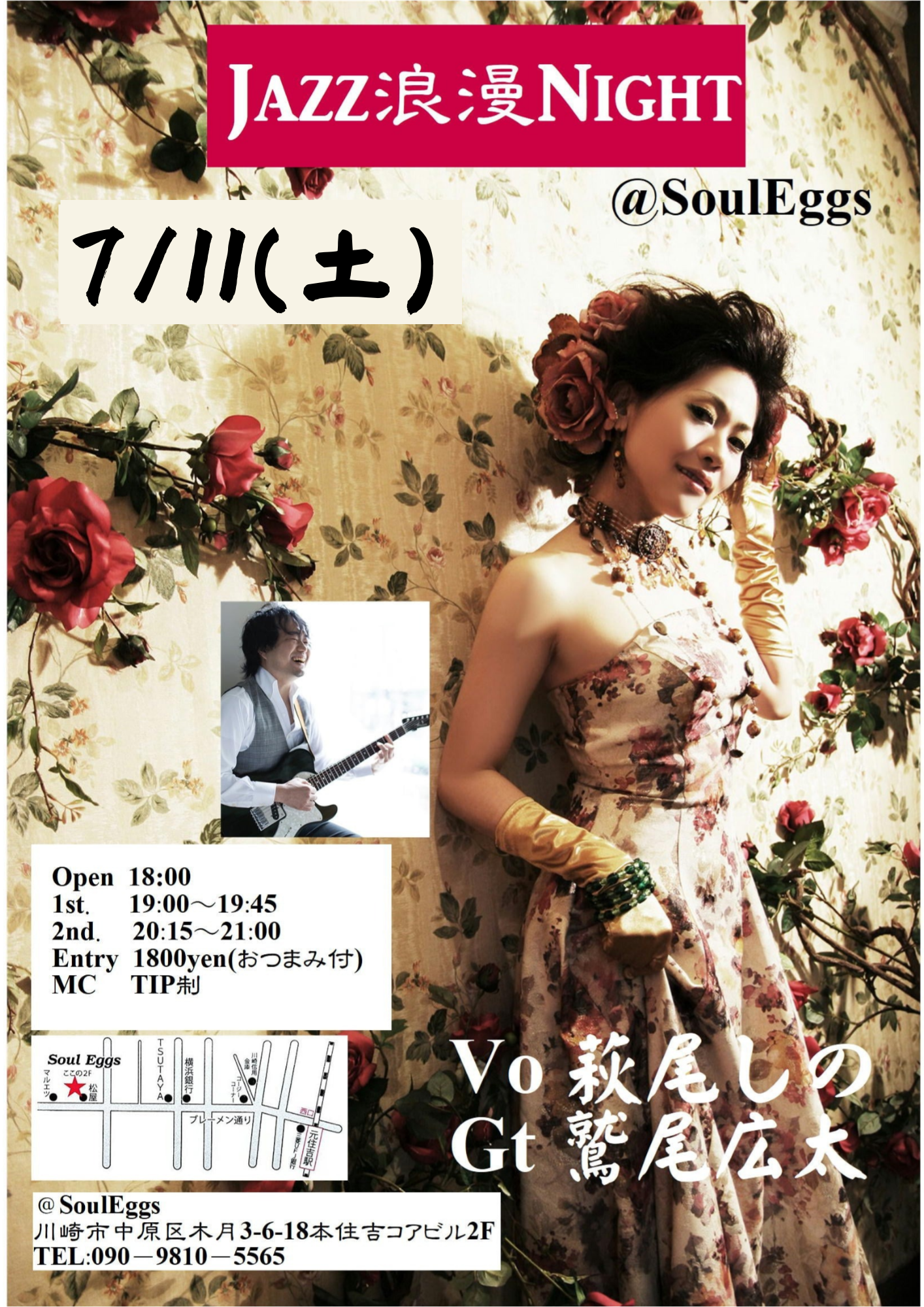 有名ライヴスポットで活躍中の歌手「萩尾しの」が、今人気のギタリスト「鷲尾宏太」と生ライヴ(投げ銭ライヴ)します。🎼🎤🎶🎸🎶🎸😄