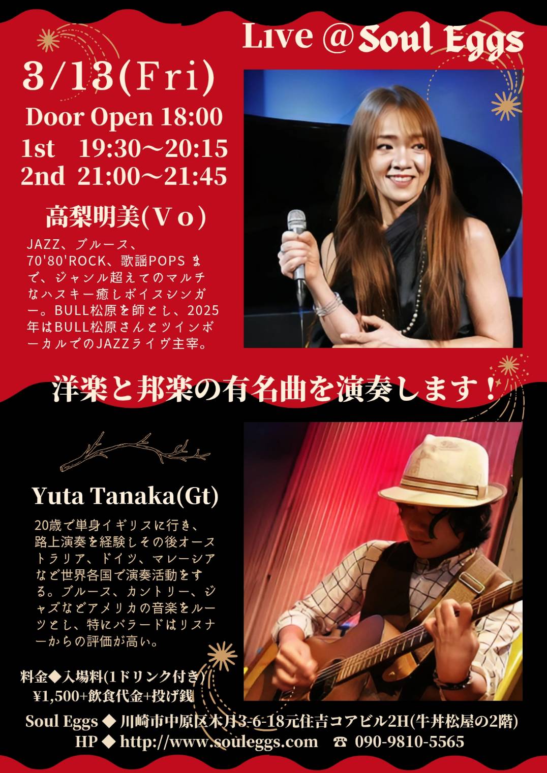 有名ライヴスポットで活躍中の歌手「高梨明美」が、今人気のギタリスト「Yuta Tanaka」と生ライヴ(投げ銭ライヴ)します。🎼🎤🎶🎸🎶🎸😄